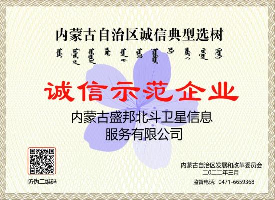 喜报:内蒙古盛邦北斗卫星服务有限公司被评为自治区“诚信示范企业”